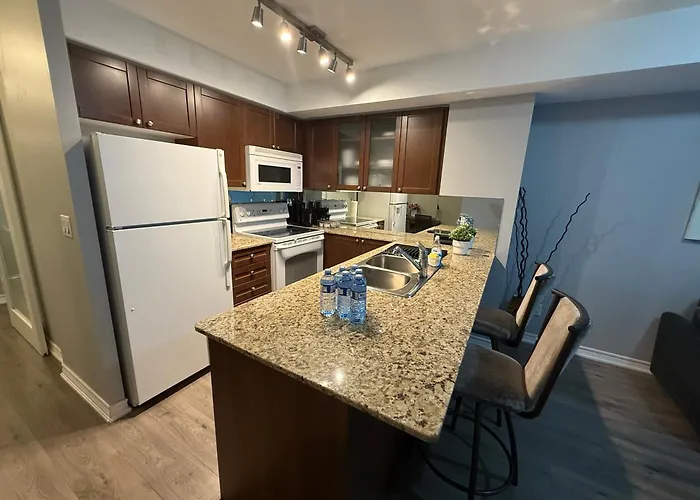Scaddabush Italian Kitchen & Bar offers guests the chance to dine on Italian delicacies in a pizzeria, all located 350 meters from the apartment. Another option is Barberian's Steak House, where they can relish Canadian dishes, located about 500 metres away.
